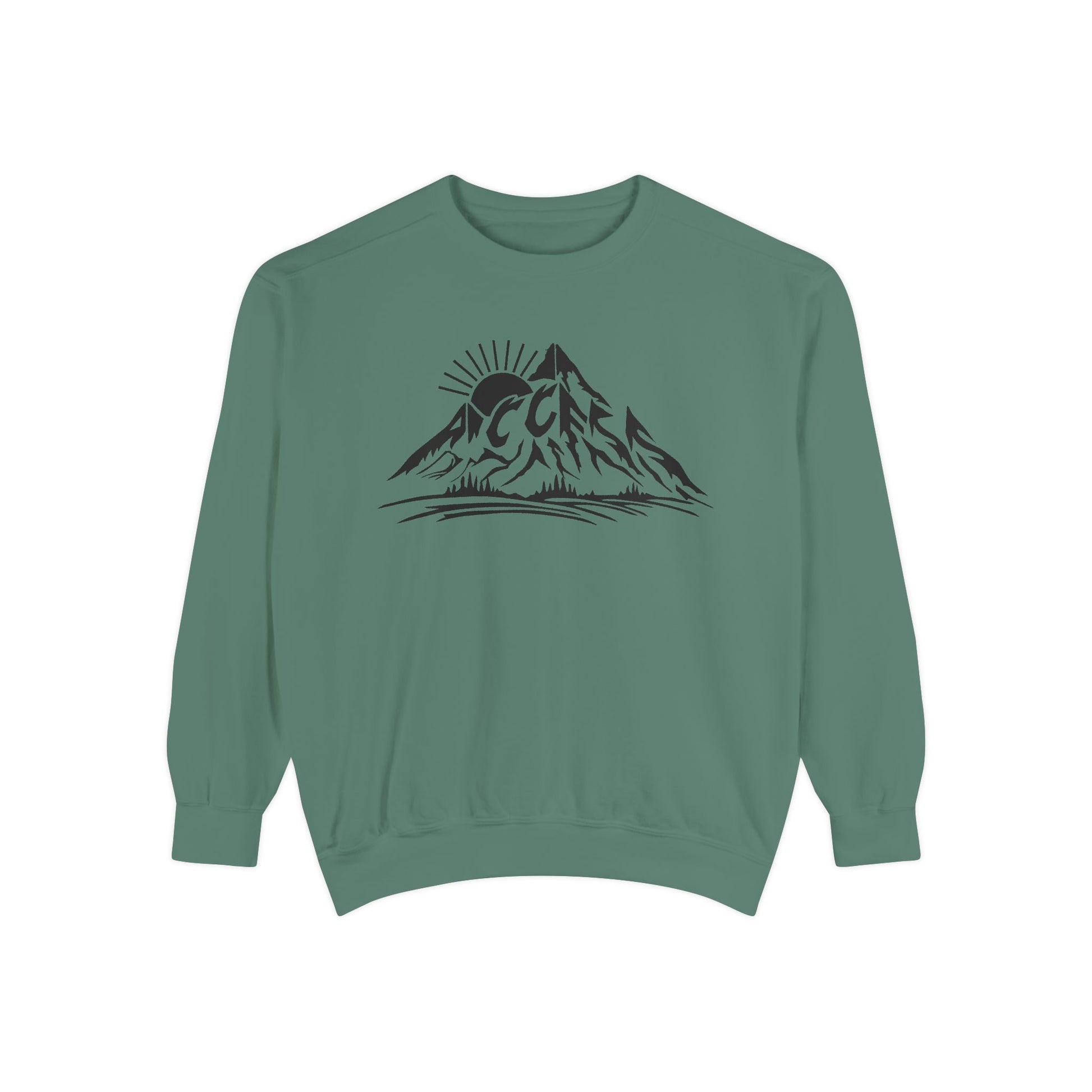 This relaxed-fit garment-dyed sweatshirt wraps you in that just-worn comfort from the first pull. The soft 80/20 ring-spun cotton blend has weight and structure without feeling stiff, and the medium-heavy fabric holds printed or embroidered artwork with crisp detail. A subtle half-moon back patch and sewn-in twill label speak to thoughtful construction, while ribbed collar, cuffs, and hem stretch with you and spring back for a tidy fit. The sunrise-over-mountain graphic placed on the chest brings a quiet outdoorsy mood — wear it for slow mornings, trailhead coffee, or evenings around a small fire. OEKO-TEX low-impact dyes mean the color feels lived-in, not harsh; embroidery options are available for a refined left- or center-chest accent.