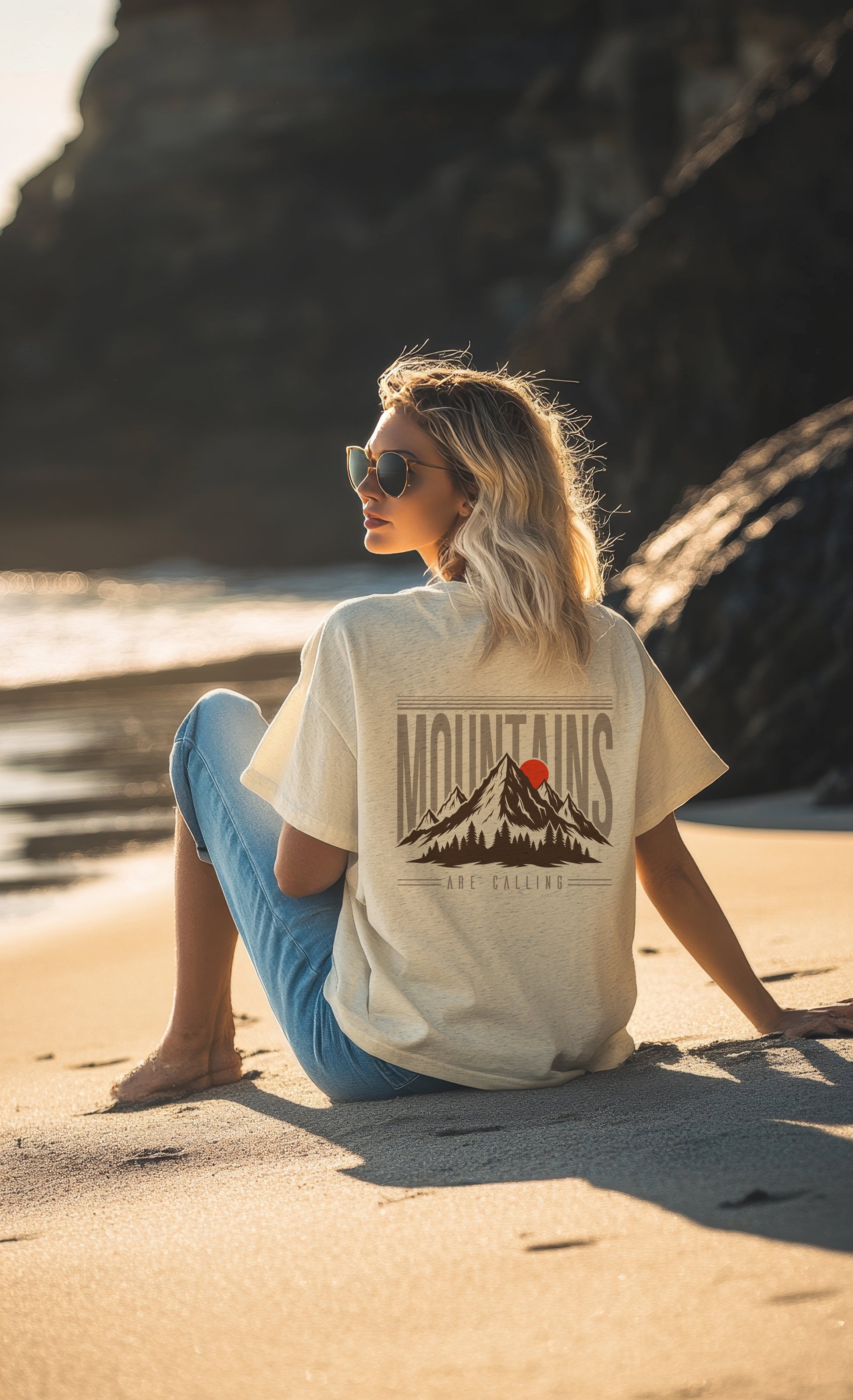 Access Travel "Mountains Are Calling" Retro Sunset Tee